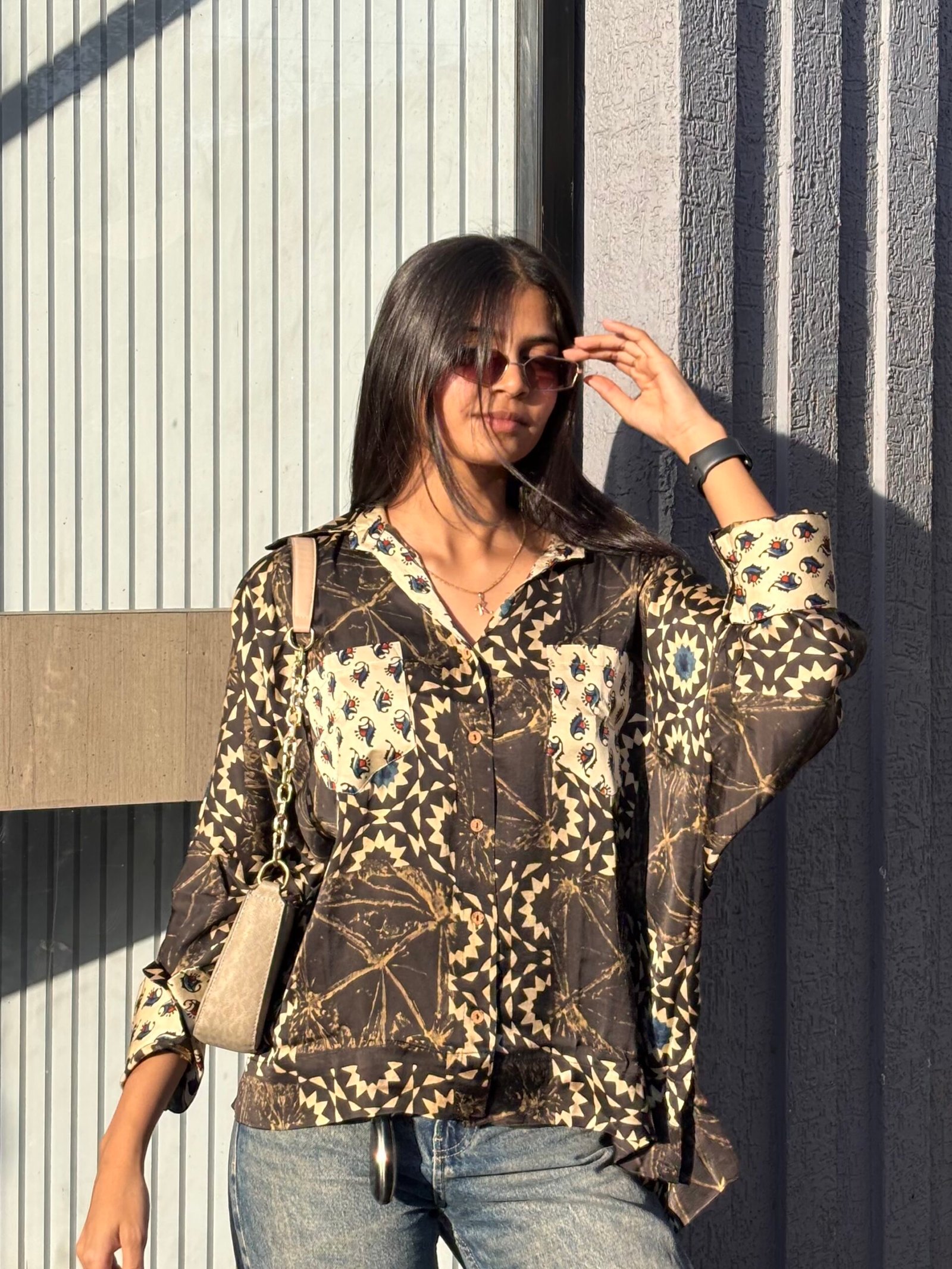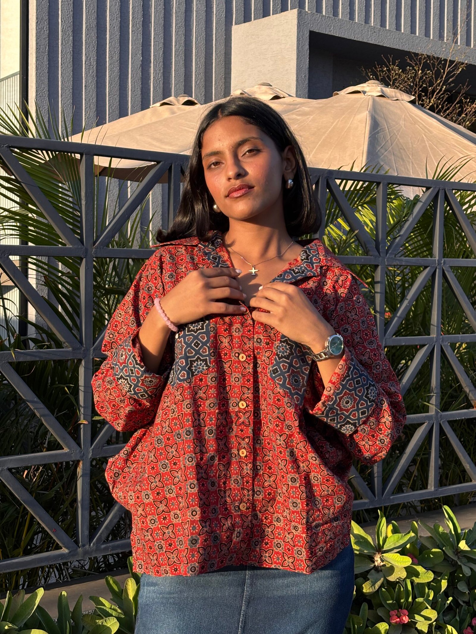 Ajrakh Handblocked Cotton- Oversized Shirt